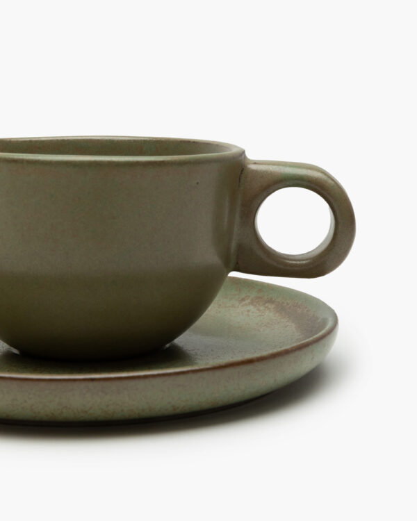 These earthenware cups are a nod to the deep colors of the mystical North Sea. The set consists of the Lungo cup and saucer and is part of the Surface collection. The reactive glaze gives each piece a unique character, resulting in subtle variations in color that add warmth and authenticity to the collection.