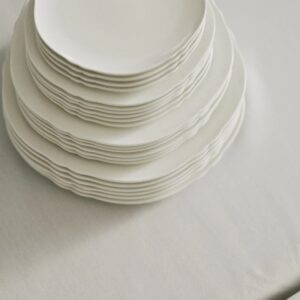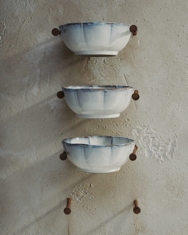 Ribbed white earthenware bowl. This earthenware is part of Sergio Herman’s Inku Tableware collection and has a unique design inspired by Japanese blossoms.