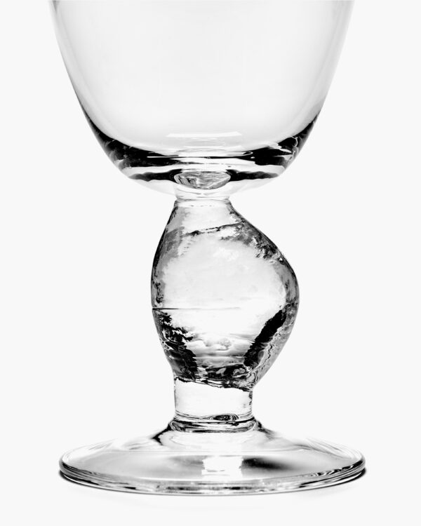 The white wine glass from the Out of Lines collection by Uncharted is mouth-blown, featuring organic shapes that fit comfortably in your hand. Each piece is inspired by the natural ovals found in olives, lemons, and plums, creating an intuitive design that blends functionality with organic beauty, making it a very special wine glass.